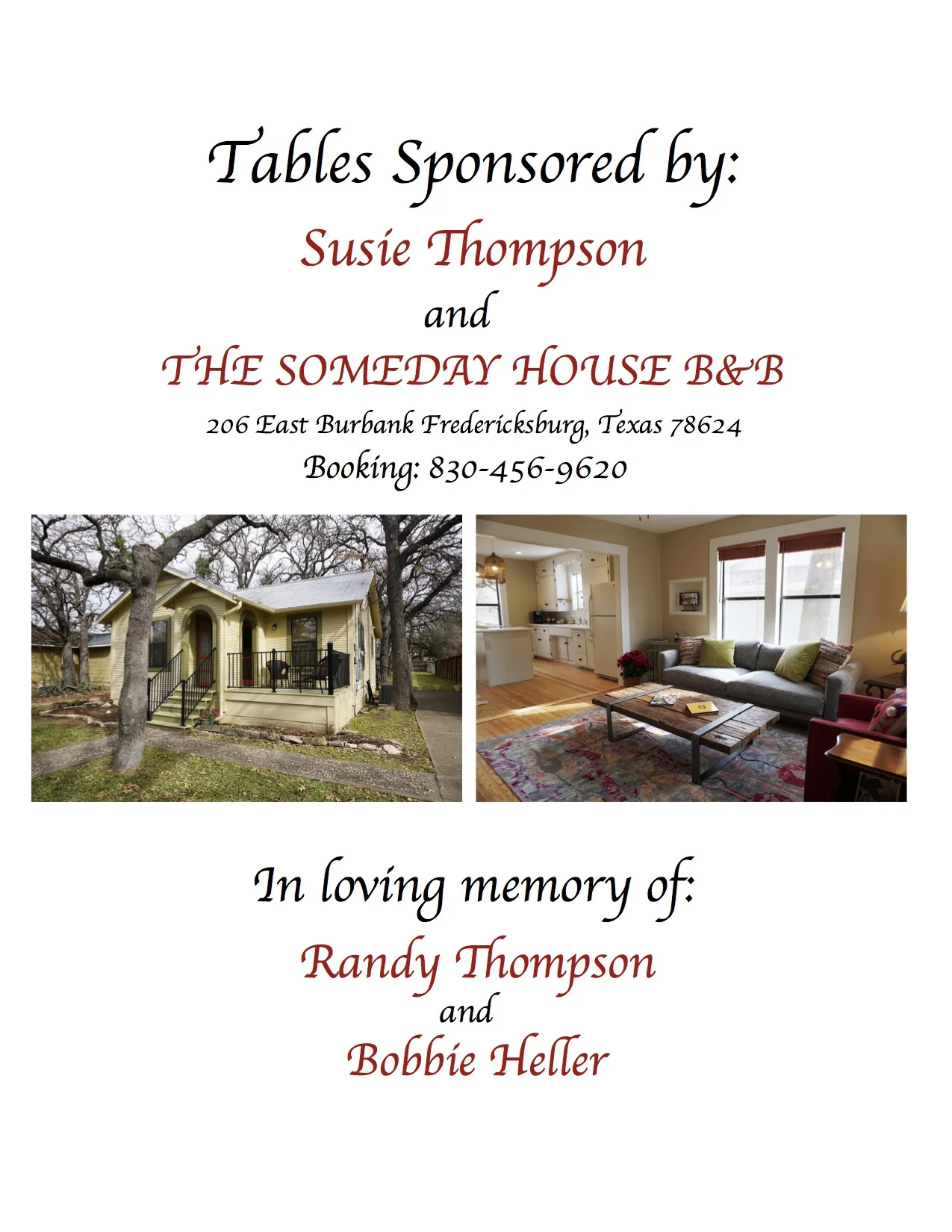 Table Sponsor Susie Thompson and her “The Someday House B&B”