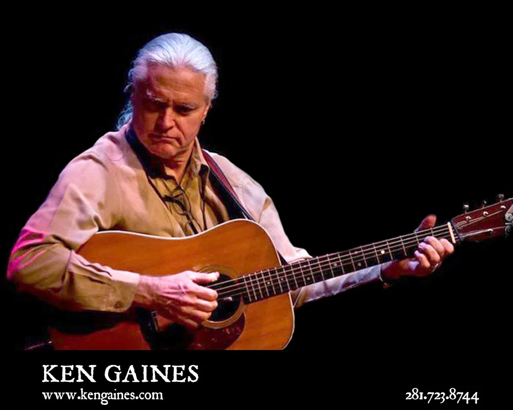 Houston area singer/songwriter, guitarist, producer, and teacher Ken Gaines has the goal of writing great songs in just about every genre and style you can come up with. "For all the great songs that have been written I belong to a wonderful tribe who believe there are a least as many great ones still to be written." His voice has the range to cover all styles and his supple guitar work lays down arrangements instead of just chords. His lyrics are both powerful and poetic and highlight the skills of a story teller and observer of life. In 2005 he was voted Singer Songwriter of the Year by the Academy of Texas Music and in 2007 his song "Einstein's Violin" was nominated Song of the Year at the Texas Music Awards.